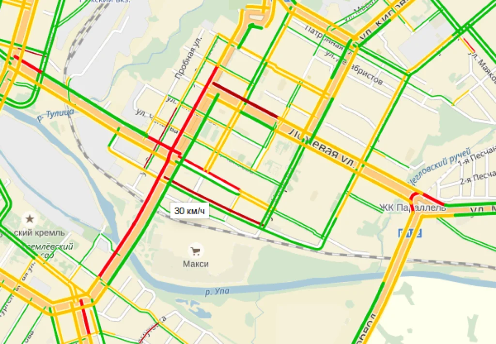 Как сообщает наш корреспондент, две иномарки столкнулись на ул. Советской. ДТП спровоцировало длинную пробку на ул. Пролетарской. Транспорт стоит от ул. Ложевой до ул. Дзержинского. Максимальная скорость движения на данном участке — 3 км/час.