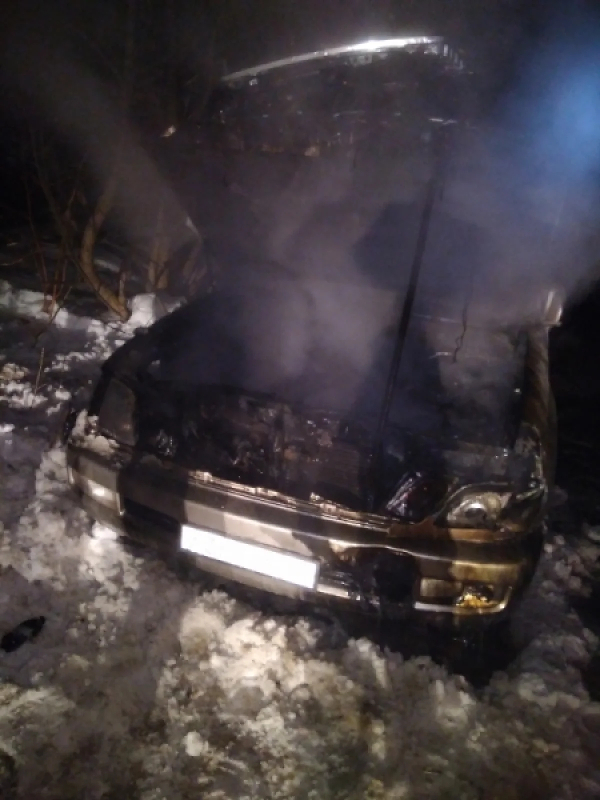 На место происшествия прибыли пожарные расчёты и оперативно потушили пылающий автомобиль.