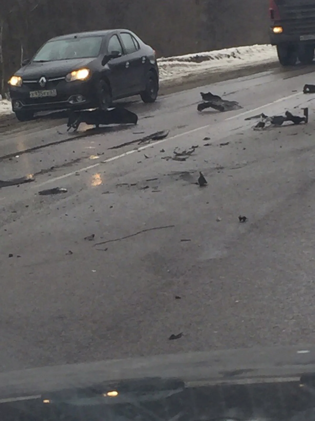 Перед поворотом на Алексин столкнулись «Лексус» и «Бензовоз». Удар был такой силы, что легковушке разворотило капот, а обломки разлетелись по всей дороги.
