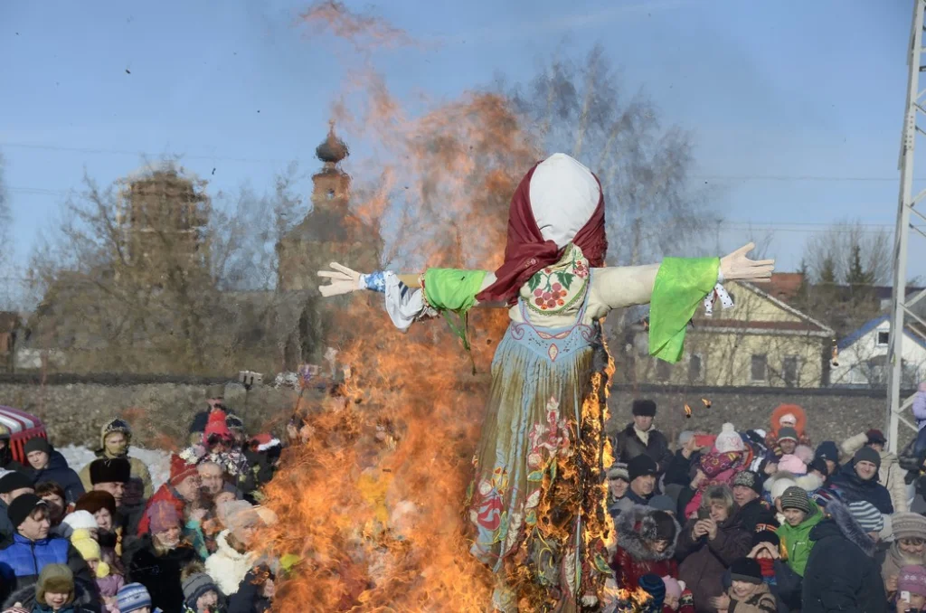 Кульминацией праздника стало сожжение чучела – проводы Зимы.