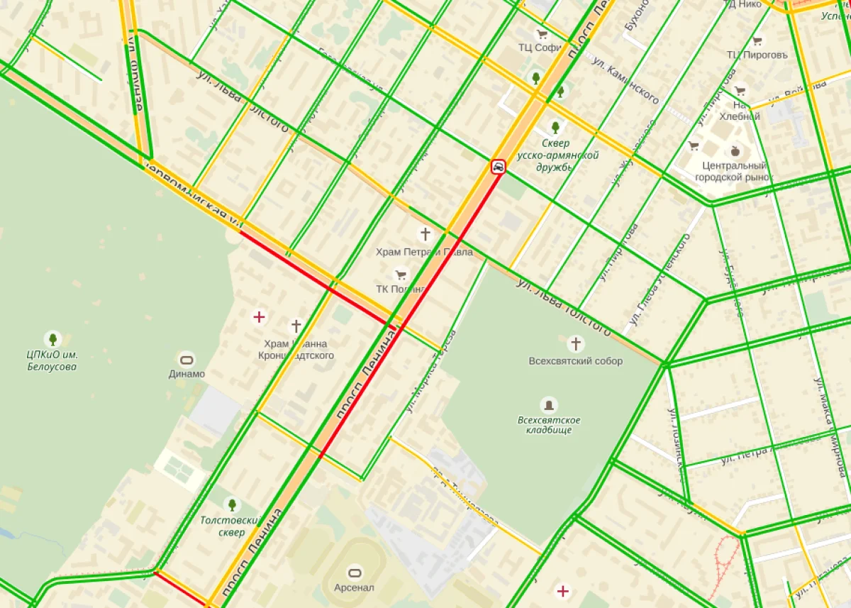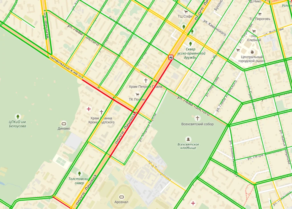 На проспекте Ленина в сторону центра образовался внушительный затор. Причина тому — необычная авария. Недалеко от областной филармонии столкнулись «Рено Логан», «ЗАЗ» и шифонер.