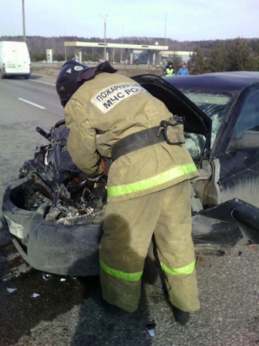 Прибывшим на место происшествия спасателям пришлось извлекать пострадавших из покорёженного автомобиля с помощью аварийно-спасательного инструмента «Спрут».