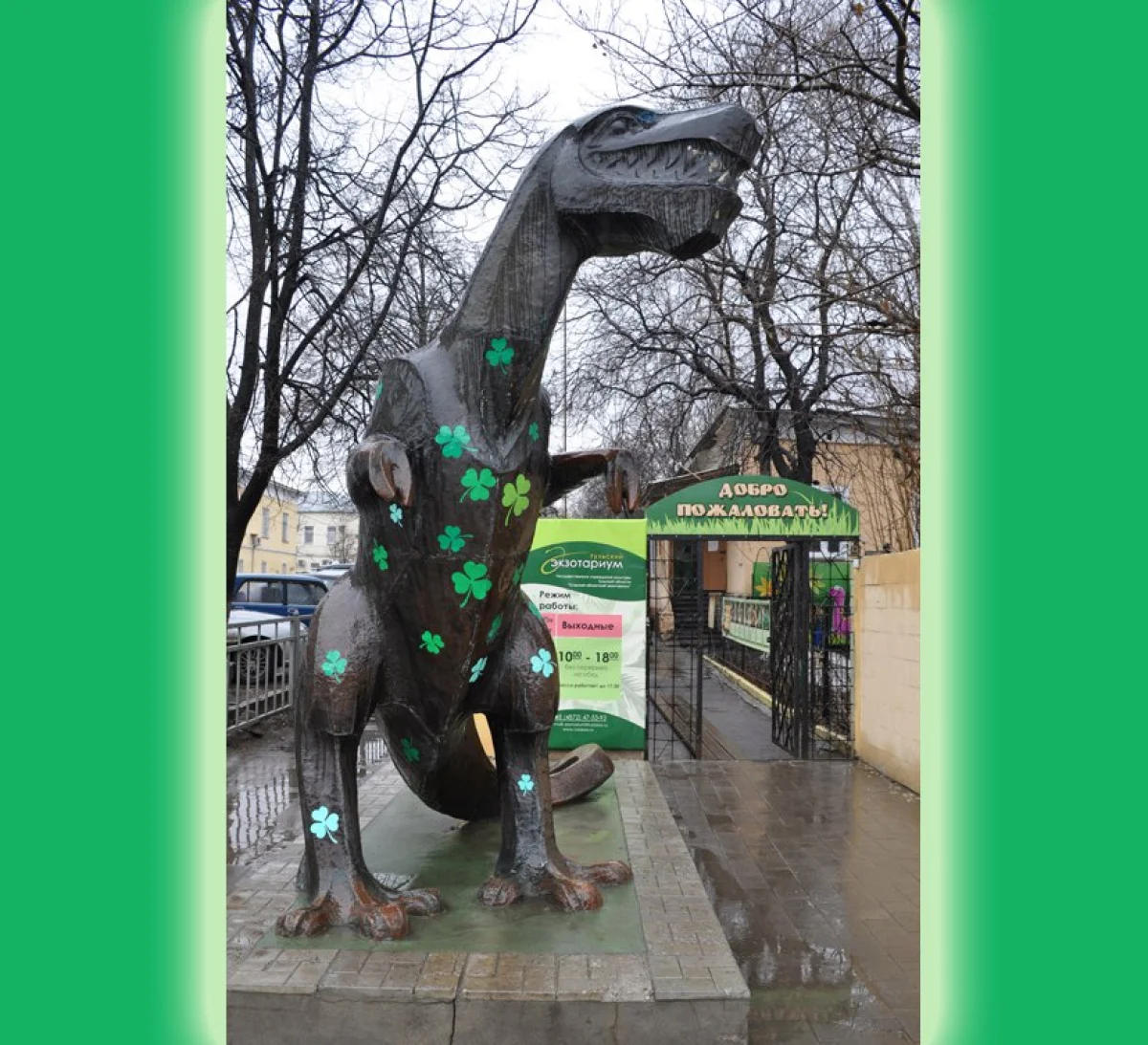Сотрудники экзотариума который год подряд украшают динозавра Серпентину листочками клевера. Среди трилистников