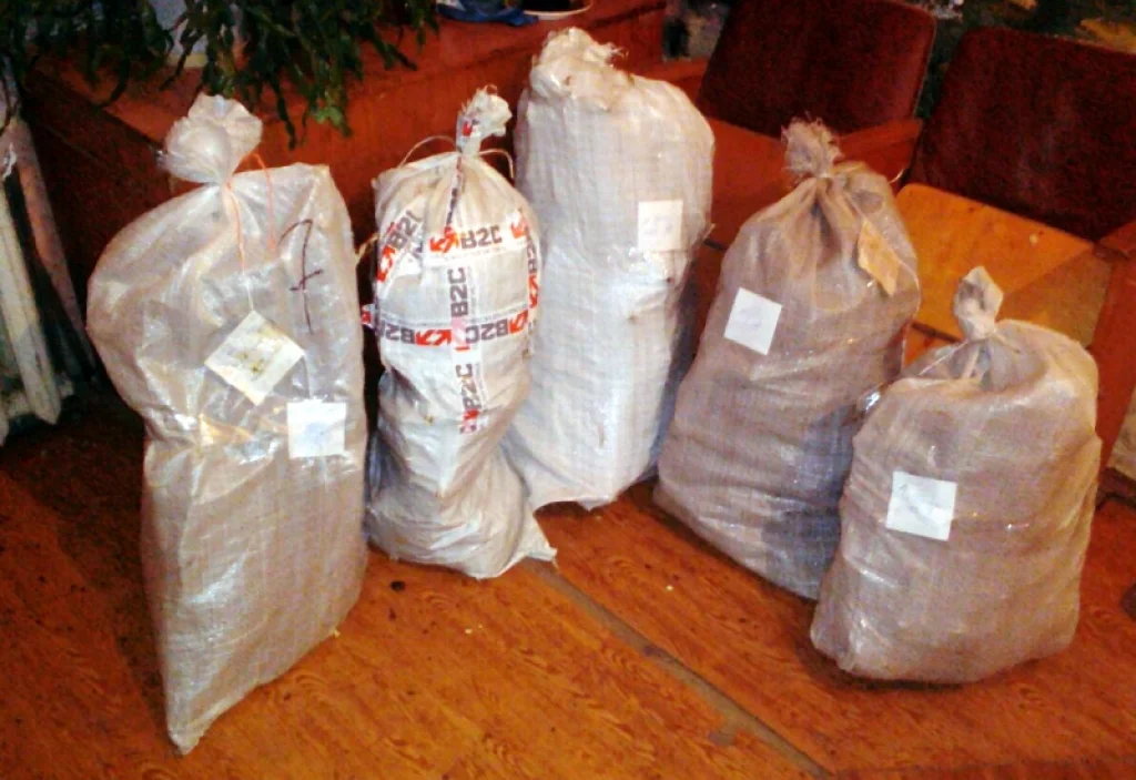 Оказалось, мужчина хранил дома коноплю (всего 6 кг 896 г). Всю обнаруженную коноплю изъяли. Для этого потребовалось несколько мешков.