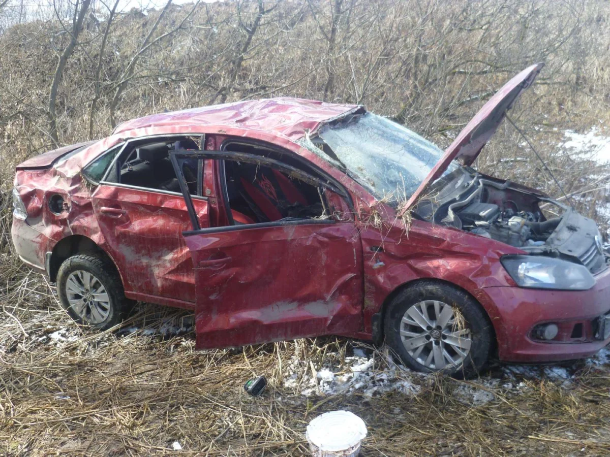 Автоледи на «Фольксваген Поло» предположительно не справилась с управлением, съехала в кювет и опрокинулась.
