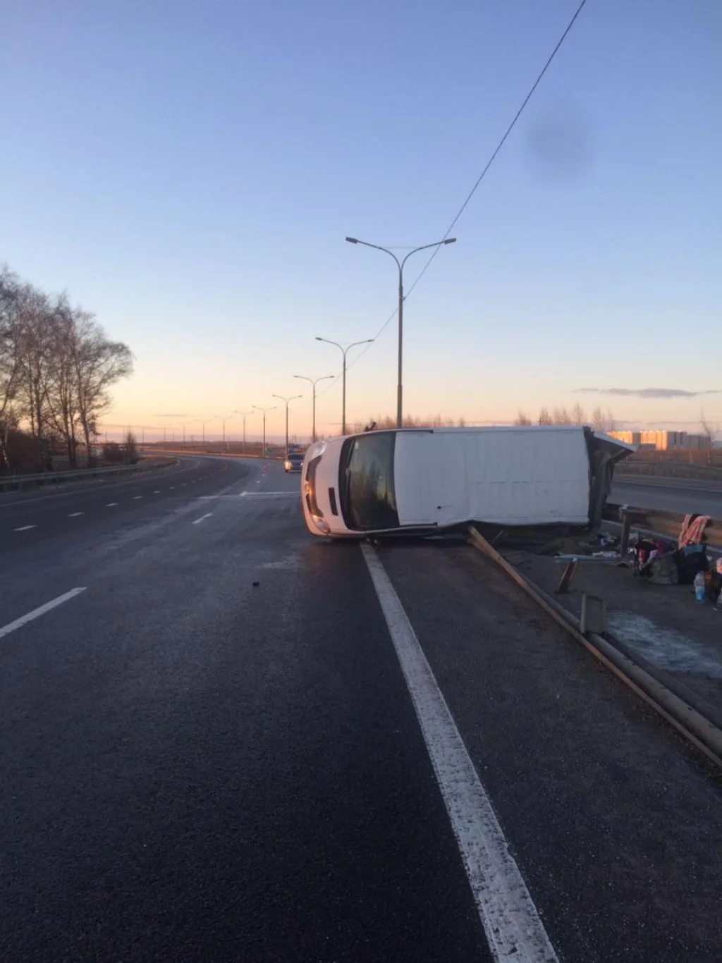 Водитель минивэна «Рено Трафик» не справился с управлением, въехал в ограждение и перевернулся.