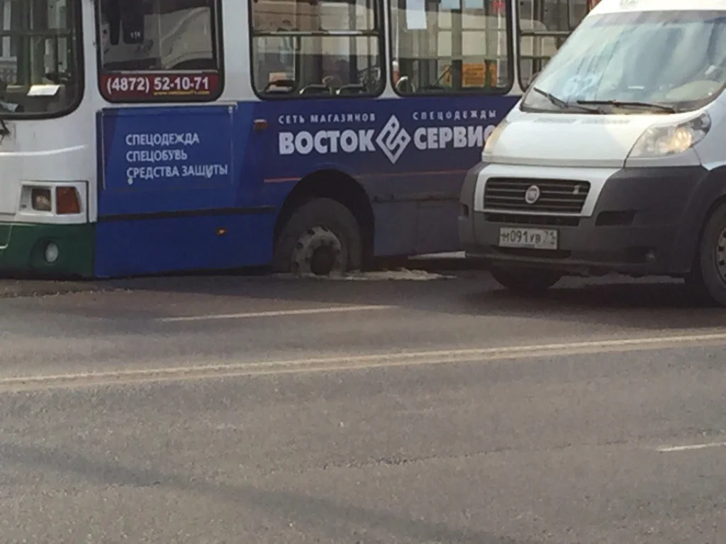 Как сообщает наш корреспондент с места событий, в Туле на перекрёстке пр. Ленина и Агеева, рядом с остановкой «Политех», троллейбус провалился в канализационный люк передним колесом. Движение на данном участке затруднено, из люка хлещет вода.