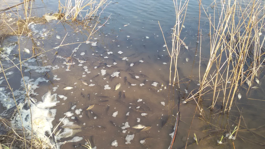 - Отстойники не предусмотрены, во время паводка всё уходит в реку Чернь. В данный момент перед плотиной, ниже по течению, стоит едкий запах химии и мертвой рыбы. Живая рыба стаями пытается выжить около берегов, мертвая на воде там же. Ниже плотины в реку на деньги рыбаков был запущен карп, его судьба теперь под вопросом. Ранее, несколько лет назад, после подобного отравления воды, в реке вымер окунь, плотва, пескарь, щука и голец. Сейчас оставался живым карась и появился ротан, - рассказал мужчина.