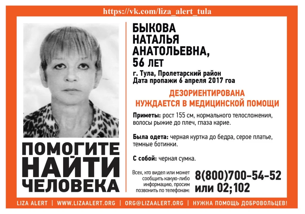 Волонтёры поискового отряда «Лиа Алерт» просят помочь в поисках тулячки.