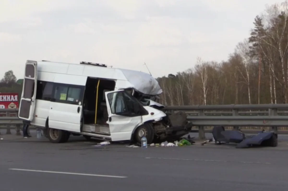 В результате аварии погибли водитель и пассажирка, сидевшая спереди. Травмы получили трое дорожных рабочих и четверо пассажиров микроавтобуса.