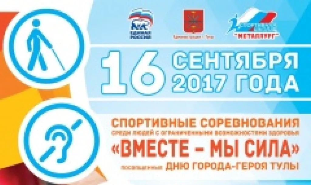 В честь Дня города-героя в Туле пройдет соревнование «Вместе – мы сила». 16 сентября в спортивном комплексе «Металлург» по улице Кутузова, д. 229 пройдут спортивные соревнования для людей с ограниченными возможностями здоровья «Вместе – мы сила». Начало спортивного праздника – 11:00.