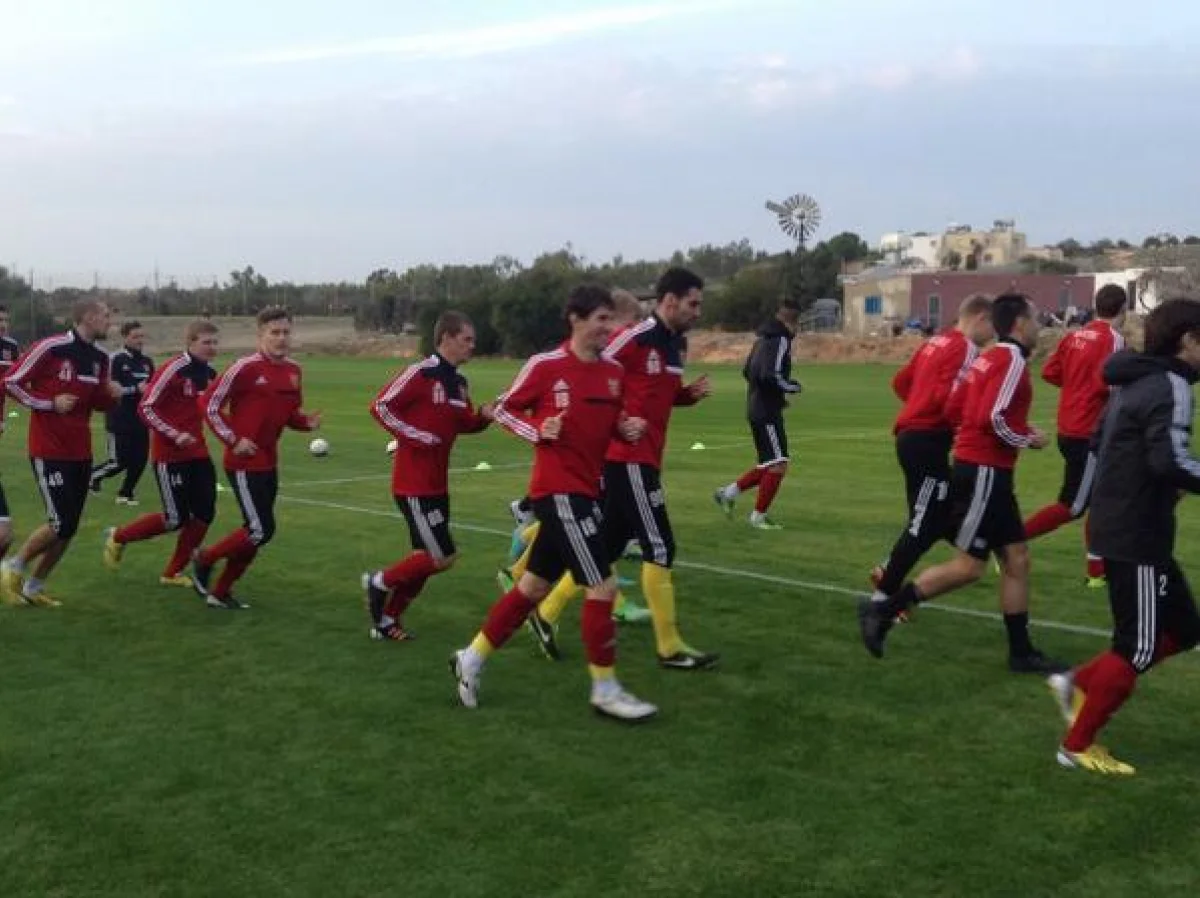 «#АрсеналТула 1-я тренировка 2014 года! В день прилета на Кипр 4 января "Арсенал" опробовал поле в Айя-Напе».