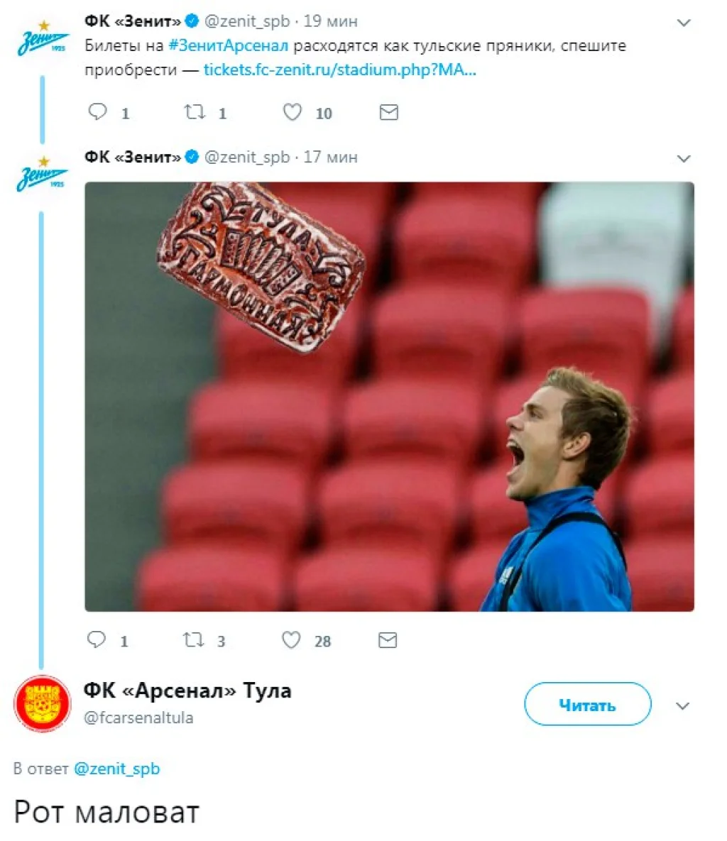 На данный момент «Зенит» – лидер турнирной таблицы, «Арсенал» занимает одиннадцатое место.