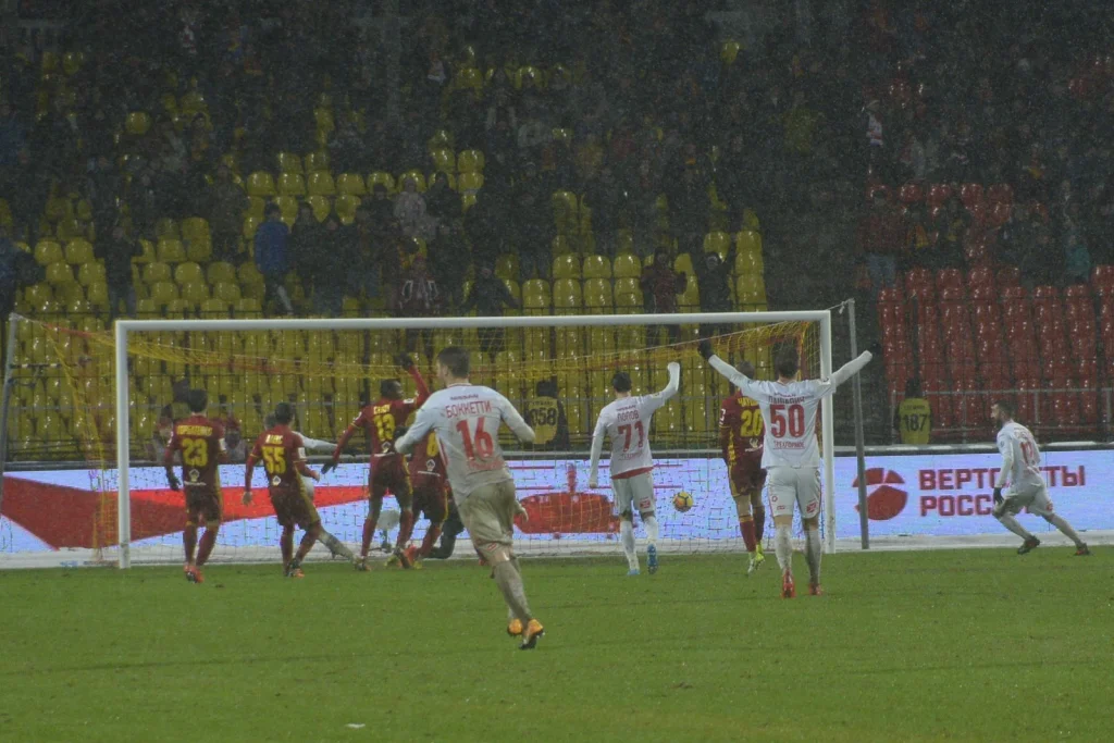 Горбатенко неудачно разыграл угловой у ворот красно-белых. Тут же подоспела драка на ступеньках западного сектора.