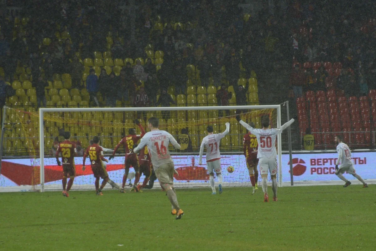 На 40 минуте Кутепов из "Спартака" получает желтую карточку - чуть менее жесткую, чем его подкат. И через минуту снова мимо ворот красно-белых, обходится даже без защиты вратаря. Фанаты считают, что на "Зените" батарейка "Спартака" подсела.