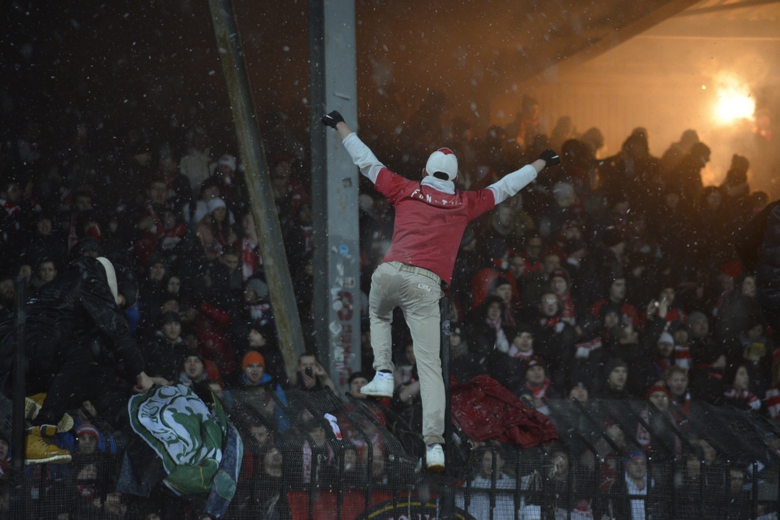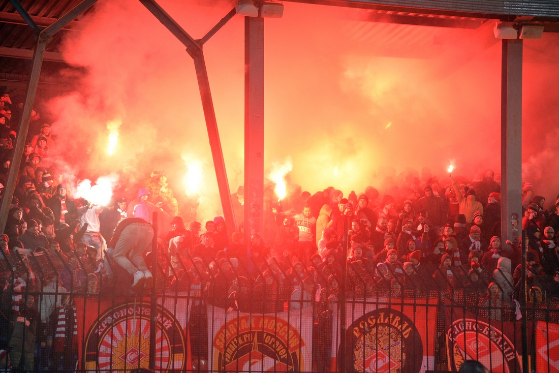 В пятницу 1 декабря на центральном стадионе "Арсенал" всех любителей футбола ожидало большое событие. В гости к оружейникам пожаловал действующий чемпион страны - московский "Спартак". Несмотря на жуткие погодные условия: снегопад вперемешку с дождем, превращавшим газон в одну большую лужу, - футбольная арена в этот вечер собрала почти 15 тысяч зрителей. Включая 2 тысячи активных фанатов с гостевой трибуны.