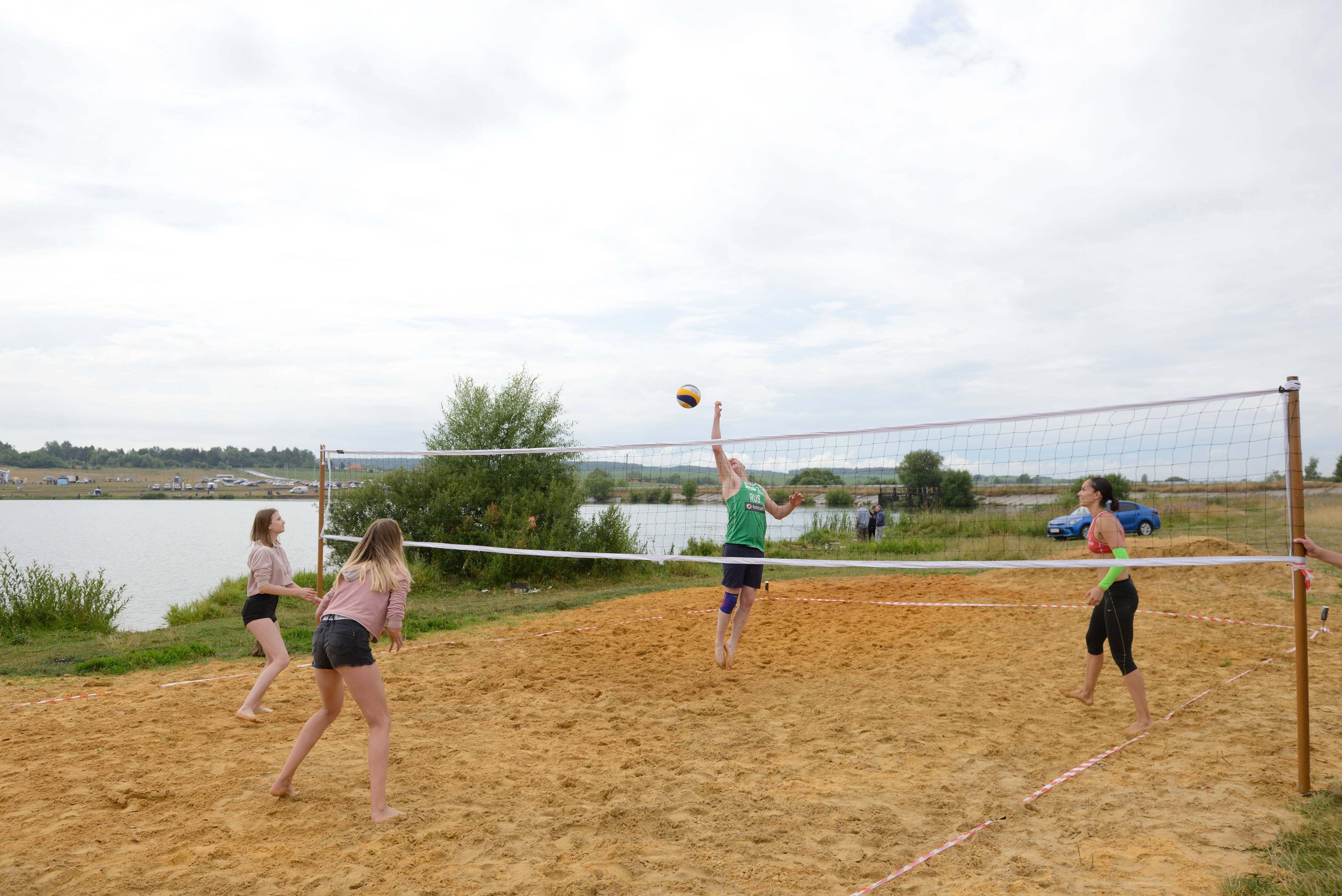 На пляже Гамовского пруда, который к Фестивалю семейной рыбалки 14 июля был переоборудован под волейбольную площадку, прошел турнир по пляжному волейболу. Настоящим украшением соревнований стало присутствие на площадке профессиональных спортсменок из волейбольной "Тулицы". Жудитт Яловая, Светлана Голикова, Олеся Иванова не только устроили всем желающим мастер-класс по владению мячом, но и не смогли удержаться от того, чтобы самим сыграть на турнире с гостями фестиваля.