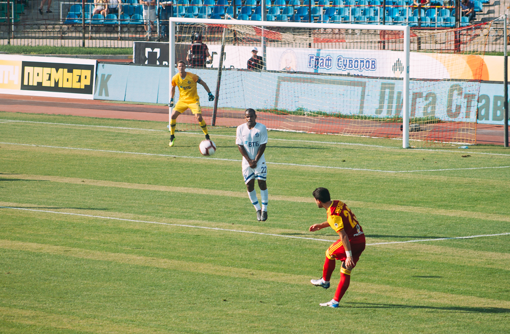 А вот концовка матча была жаркой в прямом и переносном смысле. «Канониры» будто проснулись. Сразу несколько стремительных атак обрушилось на ворота москвичей. На 80-й минуте Горбатенко вновь попытался пробить, но голкипер бело-голубых был надёжен.