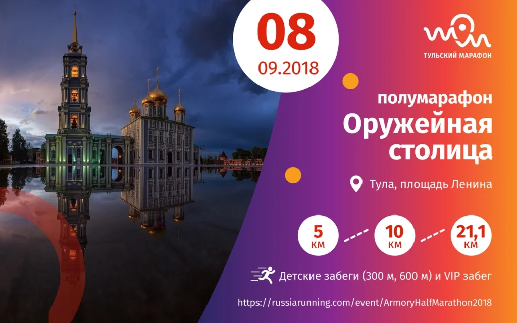 Полумарафон «Оружейная столица» приурочен к самому важному событию года - Дню города. Украшенные улицы, море развлечений, позитивные туляки и атмосфера большого праздника - вот что будет задавать настроение этому забегу!