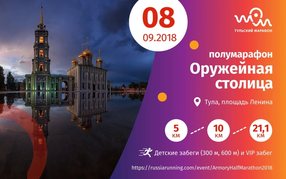 Полумарафон «Оружейная столица» пройдёт 8 сентября. В этот раз участники стартуют с площади Ленина и побегут по центральным улицам, мимо самых красивых мест исторической части Тулы. Потрясающие пейзажи на протяжении всего забега гарантированы!