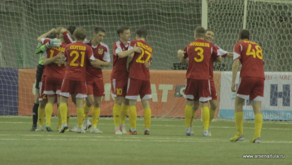 На 30-й минуте соперники туляков едва не удвоили перевес. Но мяч пришелся чуть ниже крестовины. Канонирам, как они ни старались, никак не удавалось перехватить инициативу в свои руки. Но на 43-ей минуте Владислав Рыжков с пенальти сравнял счет – 1:1. Команды ушли на перерыв.