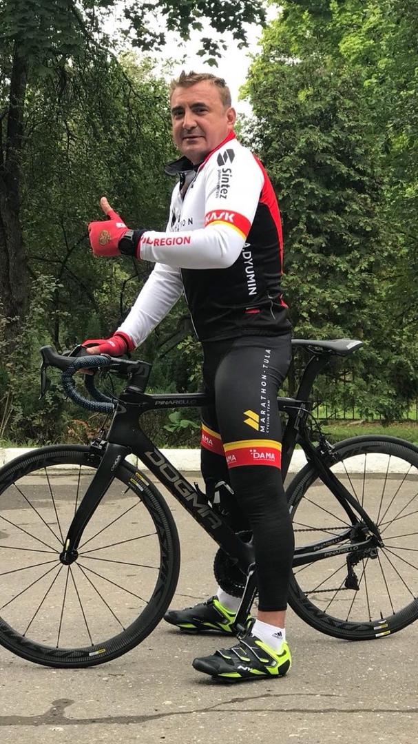 Он в спецэкипировке проехался по дорогам региона на велосипеде.