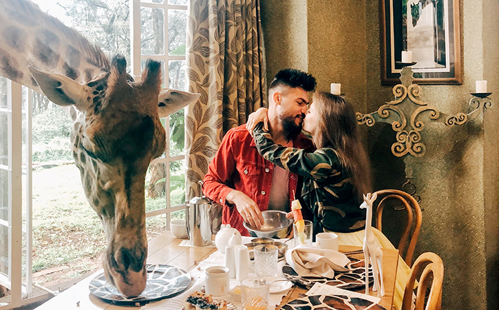 - С Кристиной открыли для себя удивительную фауну Африки. Жена как-то увидела фото, на которых постояльцы отеля в Кении с руки кормят жирафа. Загорелись этой идеей, полгода готовились к поездке.