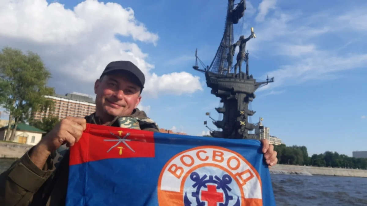 Член Тульской организации Всероссийского общества спасения на водах Павел Воеводин прошел по воду из Тульской области до Московского Кремля.