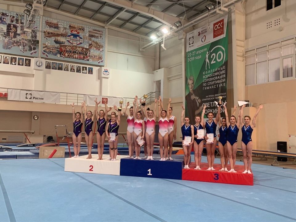 Дарья Елизарова, Елена Лиходольская, Екатерина Поликарпова, Александра Юдина, Полина Кожурова, Анна Туреева в составе сборной Тульской области в командном первенстве заняли второе место. Первыми стали спортсменки из Воронежа, третьими — гимнастки из Белгорода.