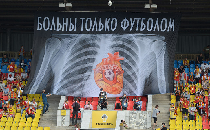 Тульских футболистов поддерживали болельщики, растянув на трибунах большые баннеры с надписью «Наша вакцина – «Арсенал» и «Больны только футболом». При этом все болельщики находились на трибунах в масках и перчатках, фан-зона же пустовала, на входе у стадиона стоял контроль температуры зрителей. Трибуны были заполнены лишь на 10%, по рекомендациям Роспотребнадзора.