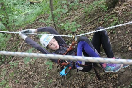 Всем членам команды необходимо было преодолеть навесную переправу, горизонтальную паутину, переправиться по верёвке с перилами и по бревну, спуститься и подняться по перилам и т.д.