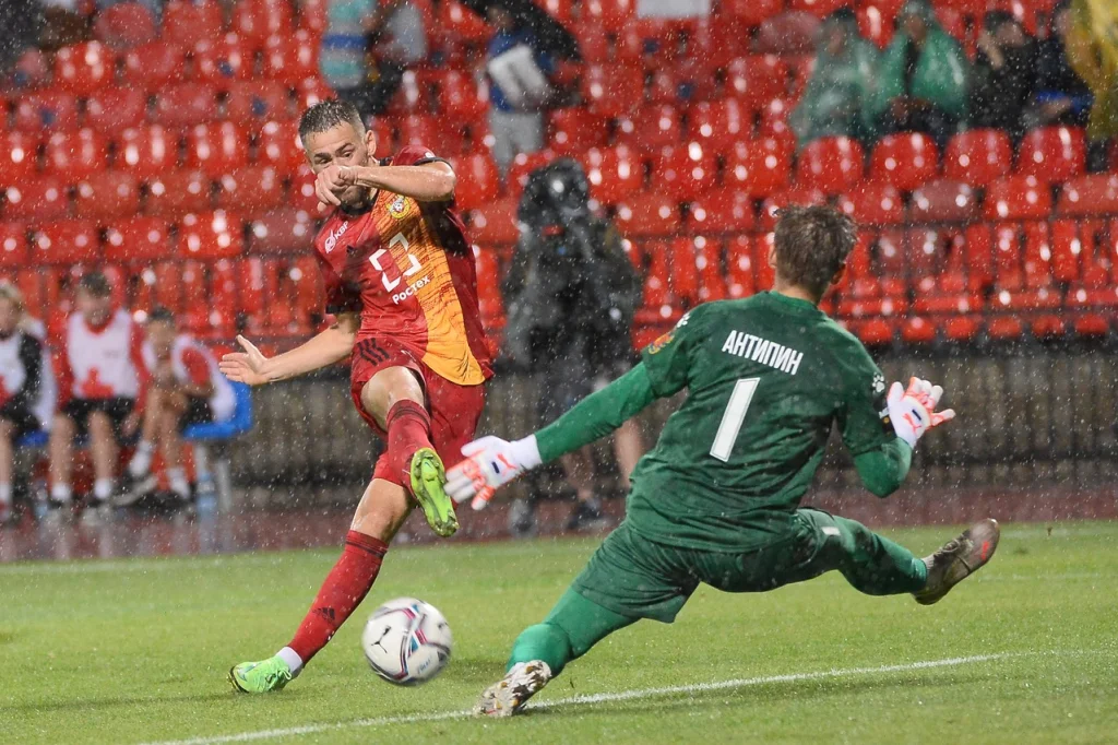 Впрочем, хозяева быстро восстановили паритет. Алиев пробил из пределов штрафной, а мяч, задев защитника, изменил траекторию и оказался в ближнем углу ворот — 1:1.