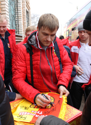 Отметим, что один из игроков, Артур Малоян, оставив в номере чемоданы, решил выйти и пообщаться с болельщиками.