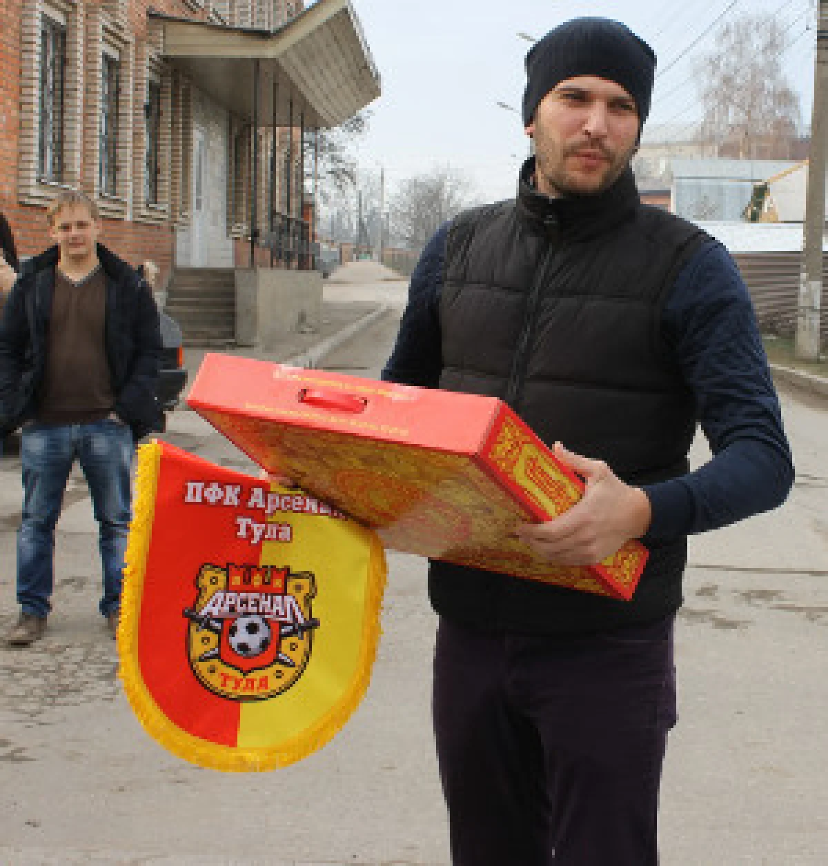 Тронутые футболисты, разгружая из автобуса чемоданы с вещами, смущенно пожимали руки болельщикам. Вне всяких сомнений, игроки не ожидали такого приятного сюрприза. Но на этом сюрпризы не закончились. Ребята преподнесли канонирам памятный подарок — огромный тульский пряник. А в обмен попросили расписаться на вымпеле с символикой команды.