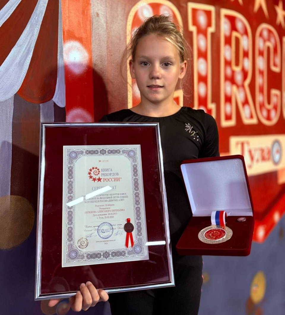 Воздушная гимнастка из Тулы Александра Бирюкова, установила новый общероссийский рекорд. Юная спортсменка выполнила