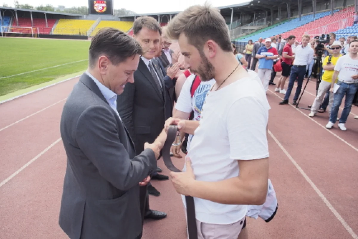 Тем не менее в благодарность за проделанную работу, болельщики красно-желтых подарили ему кожаный ремень с надписью "От болельщиков "АРСЕНАЛА"" и фирменный шарф.