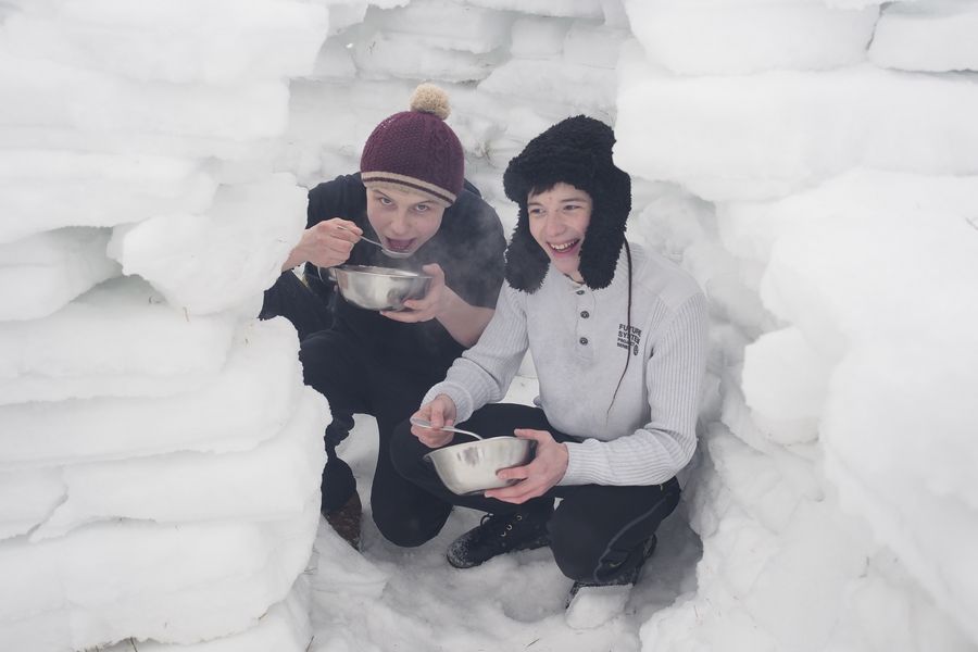 Передохнуть от состязаний и подкрепиться ребята могли в собственноручно обустроенном временном укрытии у Непрядвы. Поруганный лыжниками снежный наст, по которому они бежали по полю битвы, на этот раз был по достоинству оценен строителями крепостей. В ход шли и не только готовые снежные глыбы и выпиленные ножовкой кирпичи. Кто-то из лыж устраивал дополнительные перекрытия, кто-то затенял снежные стены лапником.