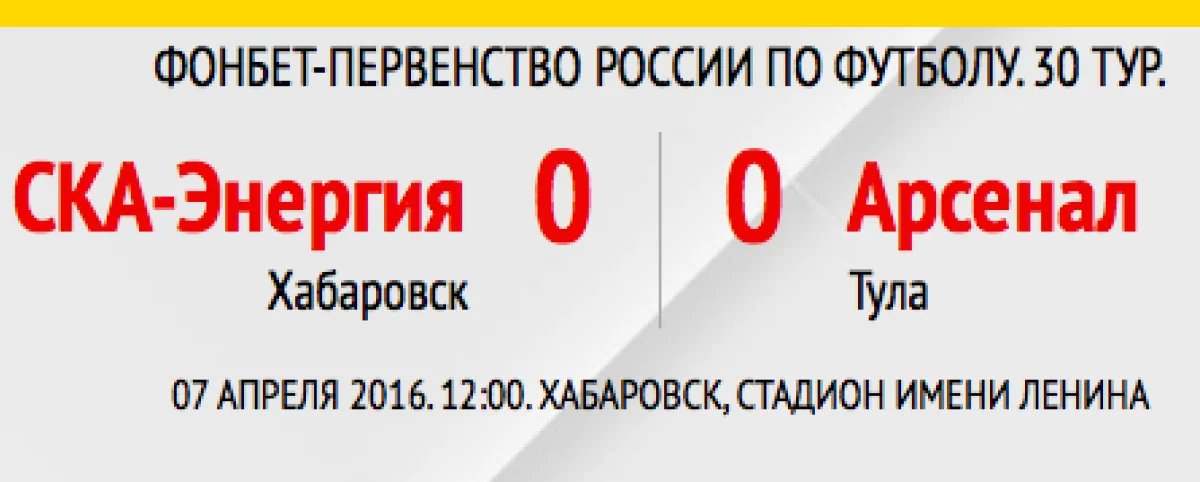 Безголевой ничьей закончился первый тайм матча в Хабаровске между "СКА-Энергия" - "Арсенал".