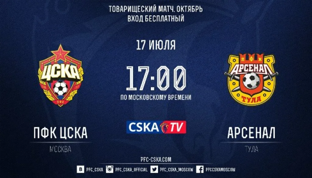 Официальный сайт канониров информирует о том, что контрольный матч «Арсенал» - «ЦСКА» перенесен на 17:00. Изначально поединок должен был состояться в полдень.