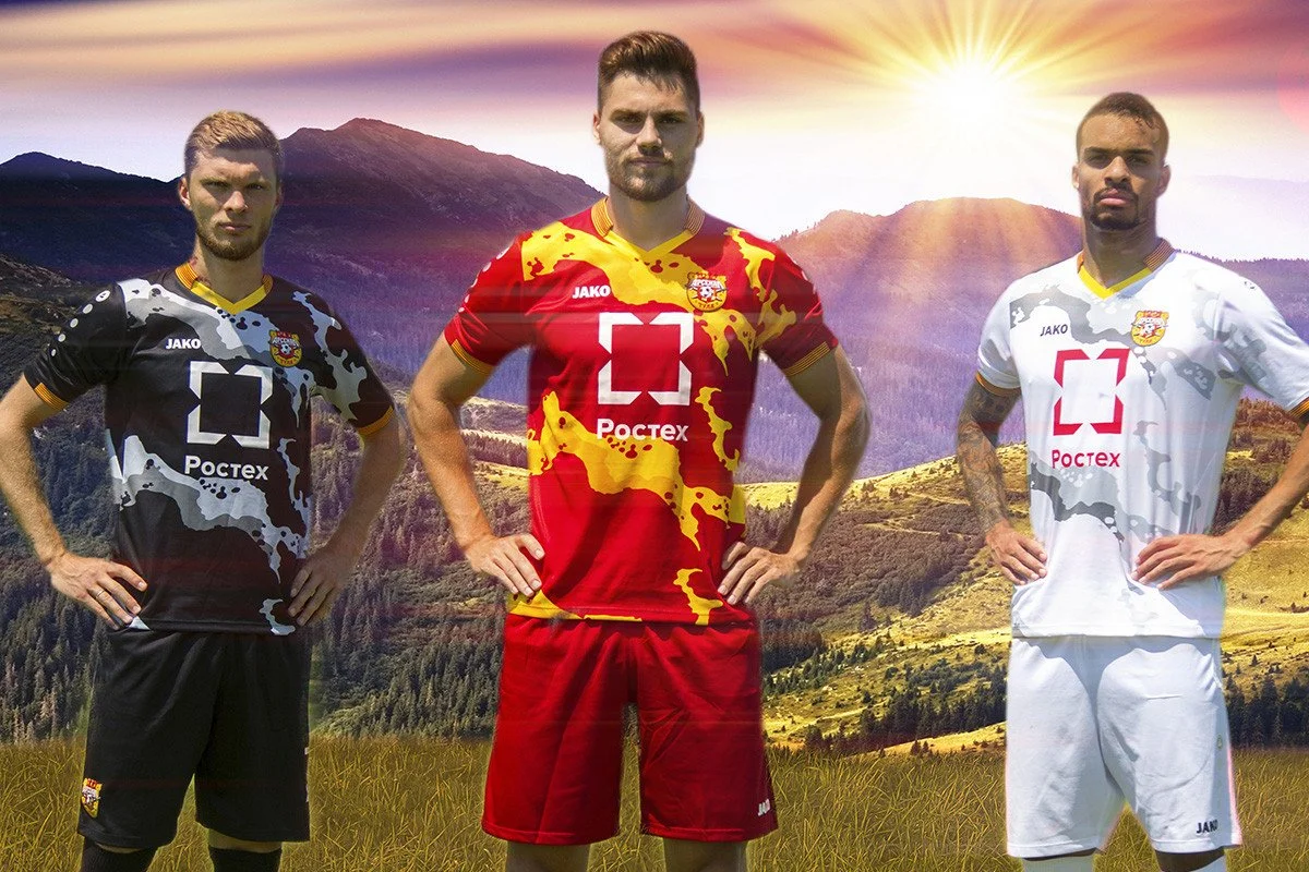 Игровая форма включает три комплекта: традиционный красно-жёлтый, белый и чёрный. В дизайне использованы элементы «разлитой жидкости». На футболки нанесен логотип спонсора - корпорации «Ростех».