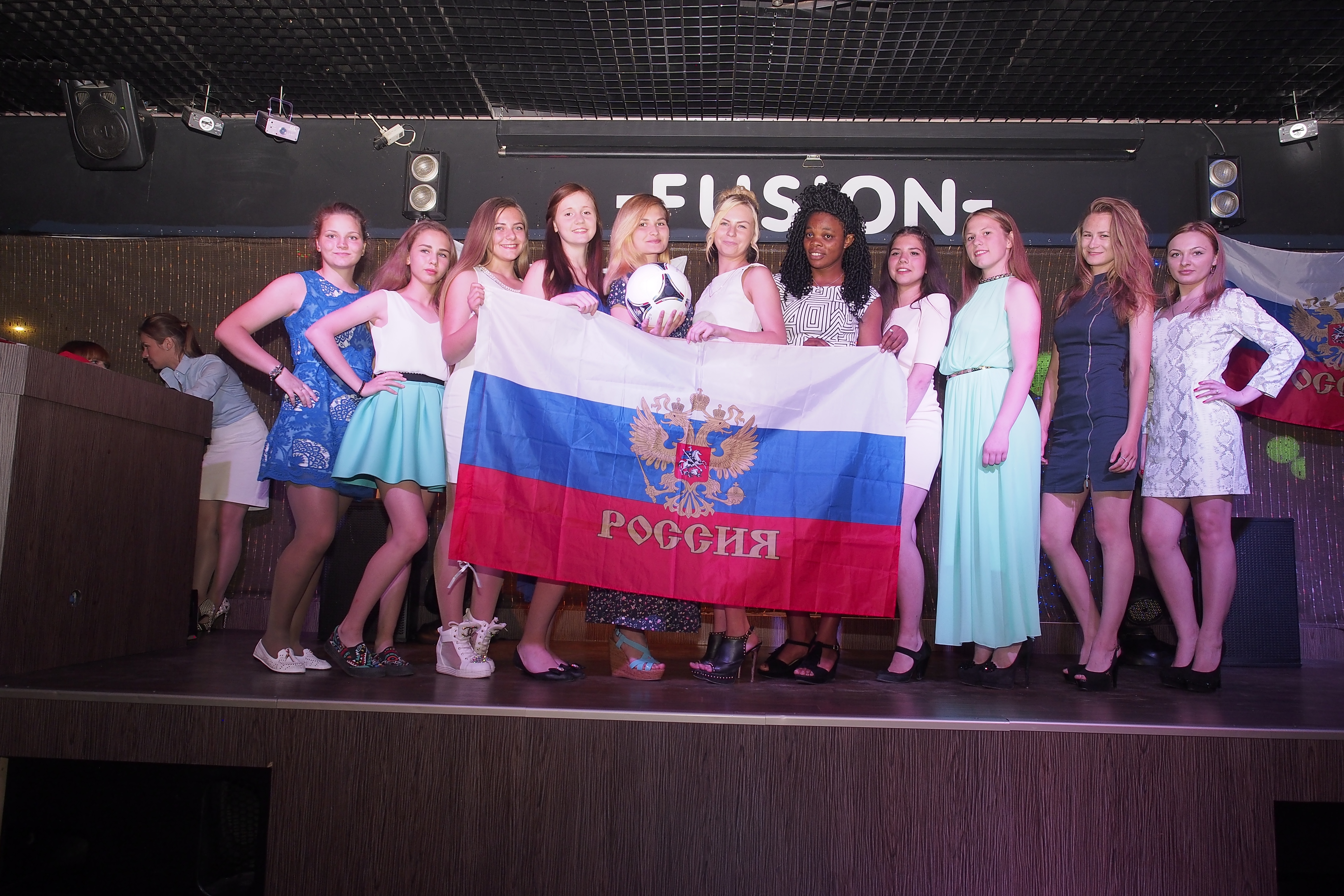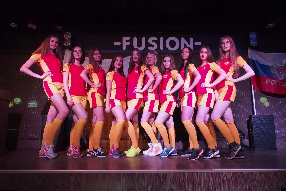 За ними на сцену поднялись футболистки команды «FoxGirls» - все они развиваются в танцевальной индустрии. Их капитан – Алина Баранова.