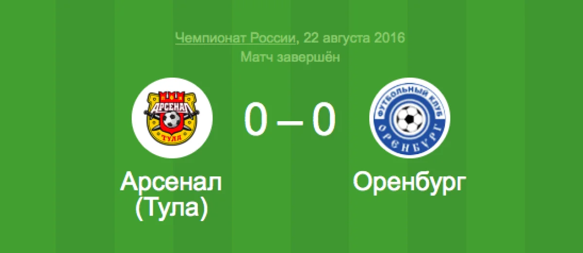 В итоге 0:0 и "Арсенал" с 4 очками расположился на 10 месте, "Оренбург", набрав 2 очка - 15-й.