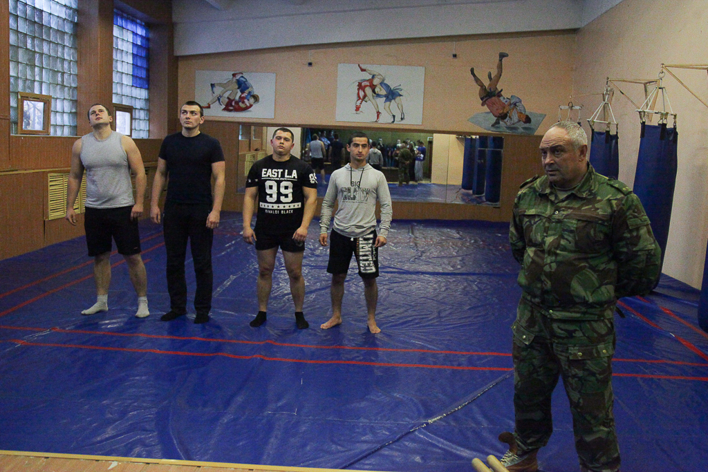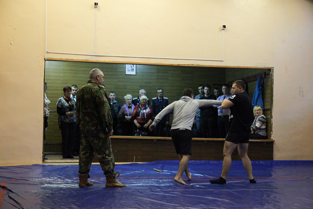 А в борцовском зале преподаватель-инструктор по боевым приемам борьбы Андрей Ченцовым продемонстрировал элементы защиты при нападении.