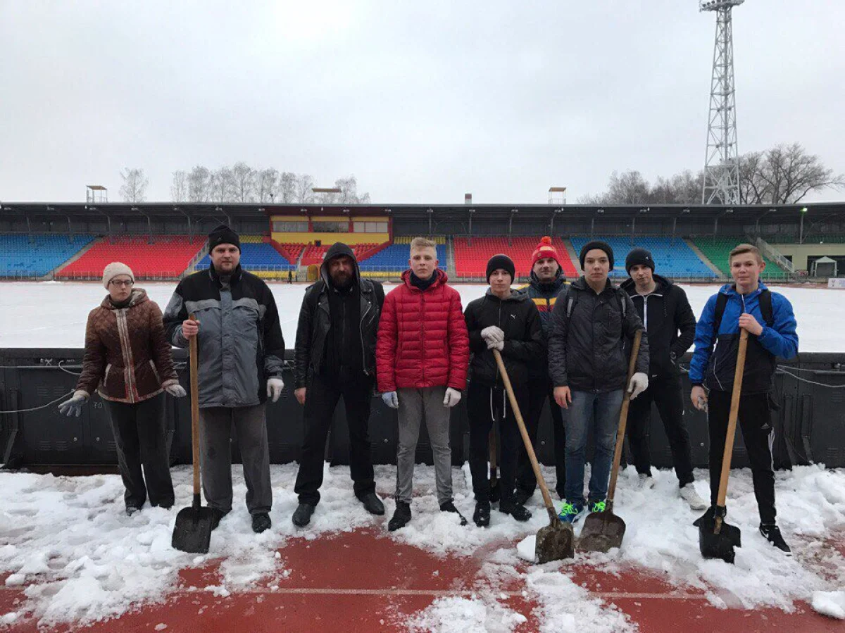 В четверг болельщики помогли расчистить Центральный стадион «Арсенал» от снега.