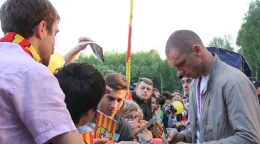 Под ликующие крики болельщиков, команда прибыла в парк на 2-этажном автобусе.