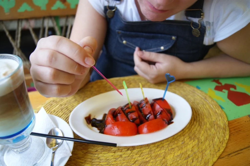 А вот помидоры — сущий ад. Это самое отвратительное блюдо в моей жизни. Ядерно-шоколадный сироп и солоноватый