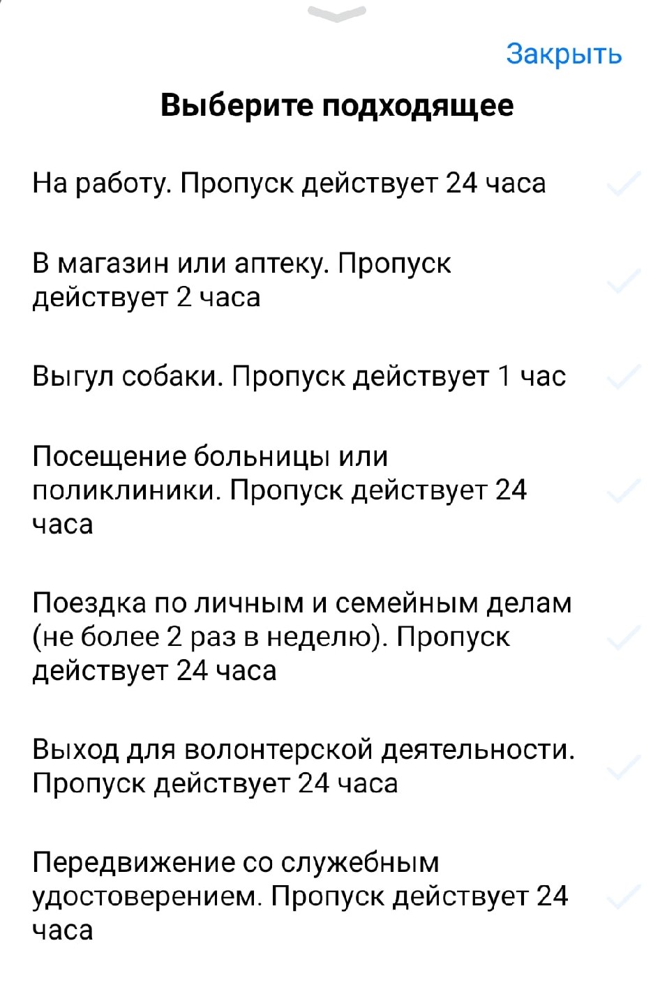 - посещение магазина или аптеки (пропуск действует 2 часа);