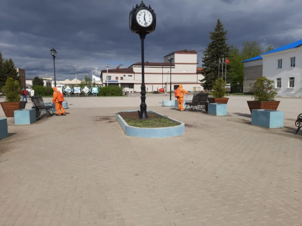 Накануне сотрудники МЧС России провели санитарную обработку лавочек, тротуаров, остановок, вокзала и прилегающей территории станции Тарусская.