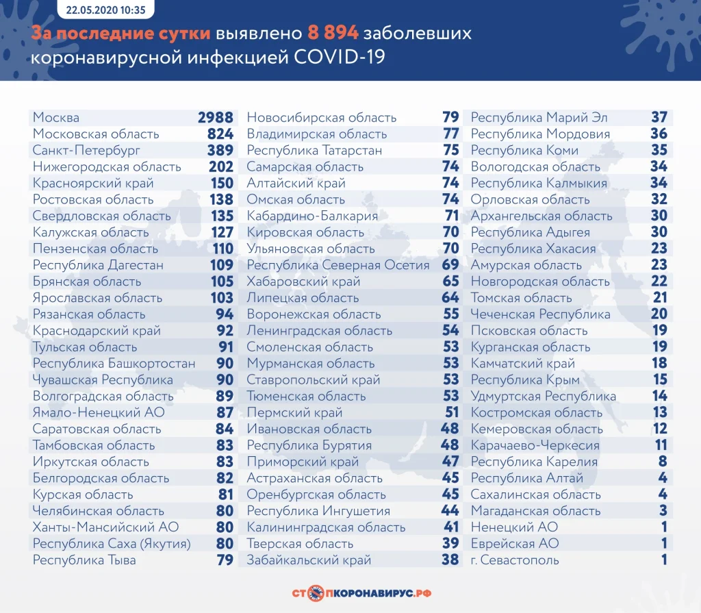 Тульский регион вошел в 15 областей, где зафиксировано больше всего заболевших коронавирусом. В тройке "лидеров" по заболевшим снова оказался Санкт-Петербург (389), Московская область (824) и Москва (2988).