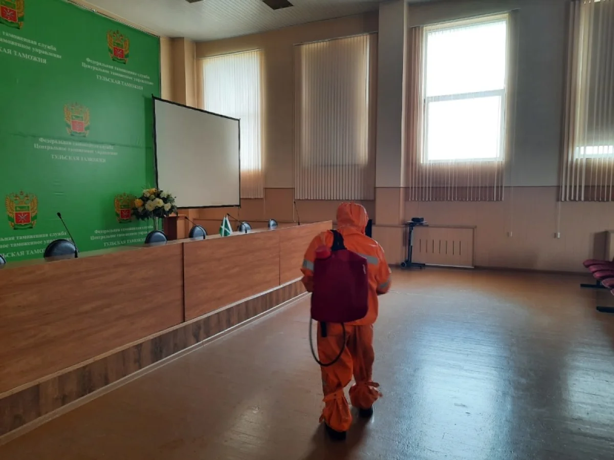 Также санитарная обработка была проведена на территории Тульской таможни. Силами спасцентра была проведена дезинфекция трех корпусов административного здания общей площадью помещений 3500 кв. м. и внутреннюю территорию таможни площадью 9400 кв. м.